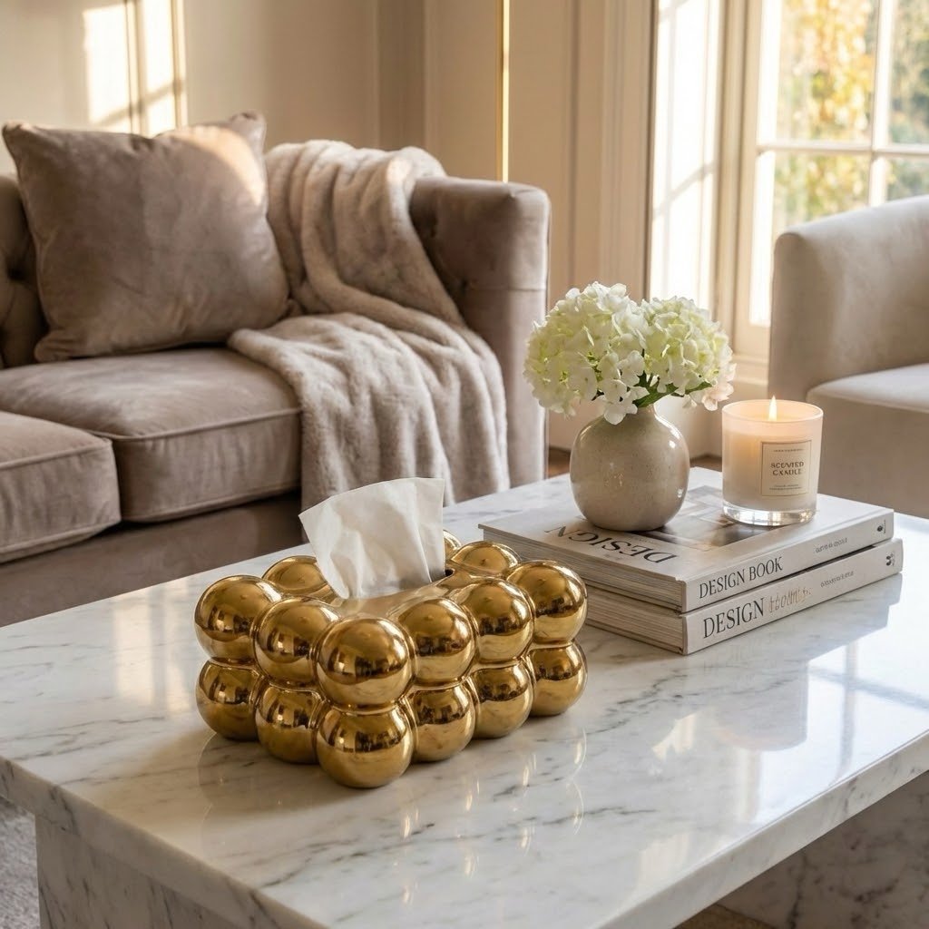 Boîte à mouchoirs décorative dorée design moderne